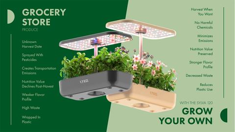 Another option if you want to go the easier route without all the hassles is to get a complete hydroponic garden kit. It has all the elements needed for the plants to grow, including a built-in grow light that you can adjust in height relative to the growth stage and height of your plants. You will find several options for this in the market, among the most complete of which is the Lyko Indoor Herb Garden Kit, a smart system that can provide your plants with their needed light all year round.