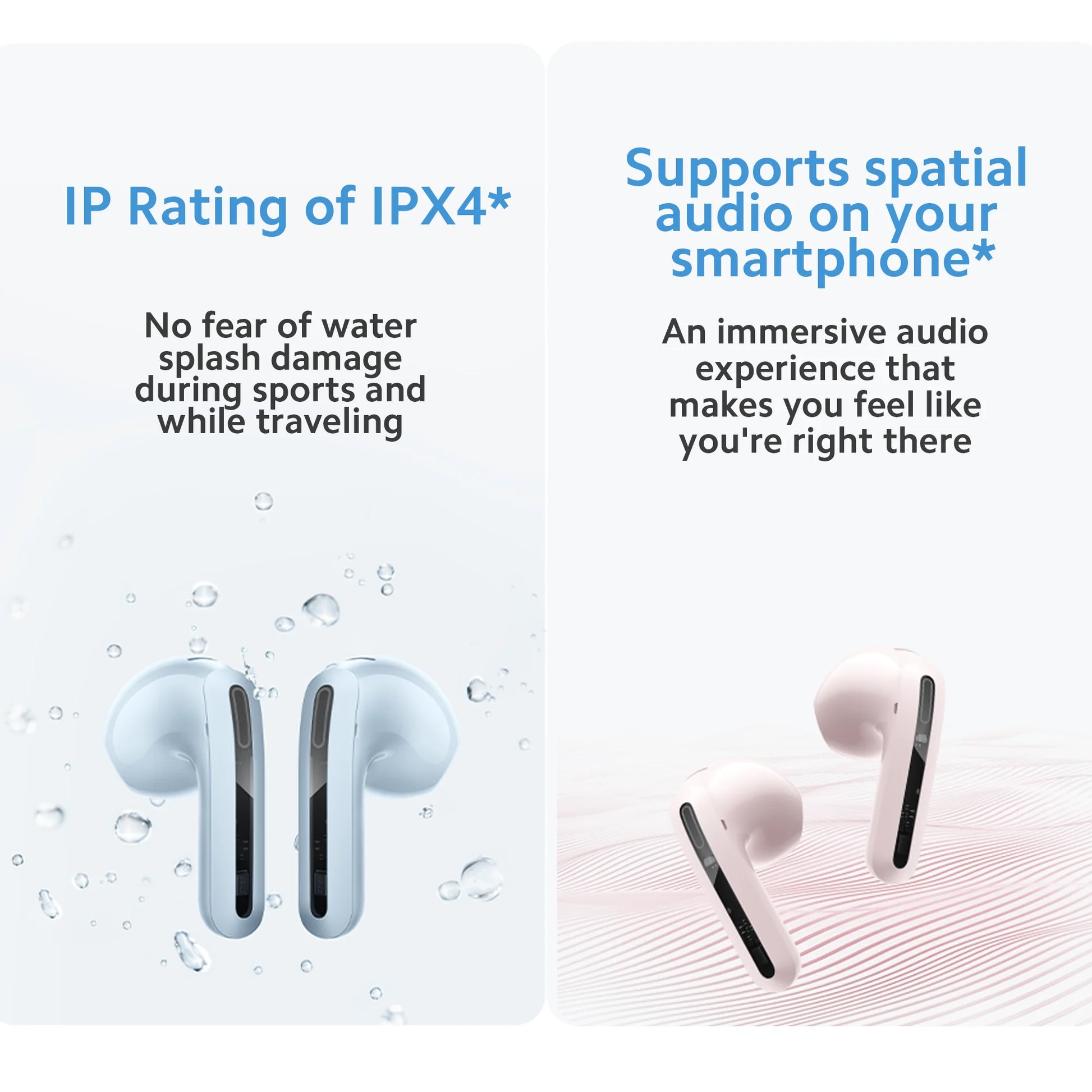 Powerful Noise Reduction - Enjoy crystal-clear calls with dual-mic noise reduction technology, designed to filter out ambient noise for enhanced voice clarity. The advanced dual-channel noise cancellation algorithm even combats wind noise up to 4m/s, ensuring your conversations are clear, whether you?re indoors or out.